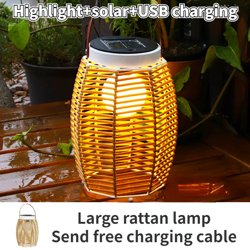 Sạc USB + Đèn sân vườn năng lượng mặt trời Đèn LED có độ sáng cao Ánh sáng mặt trời Ngoài trời Nhựa không thấm nước Đèn lồng mây Trang trí sân vườn Hình dạng tre Cáp sạc miễn phí